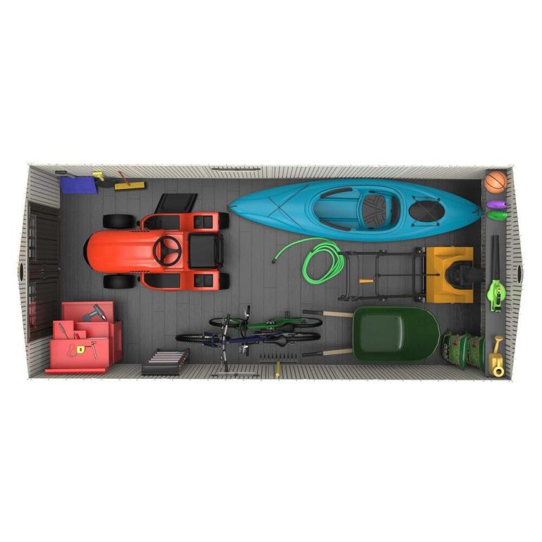 Domek nabízí obrovské množství prostoru pro uložení čehokoliv od větších předmětů, jako jsou sekačky na trávu, kajaky a jízdní kola, až po menší nástroje, jako jsou lopaty, hrábě a konve...