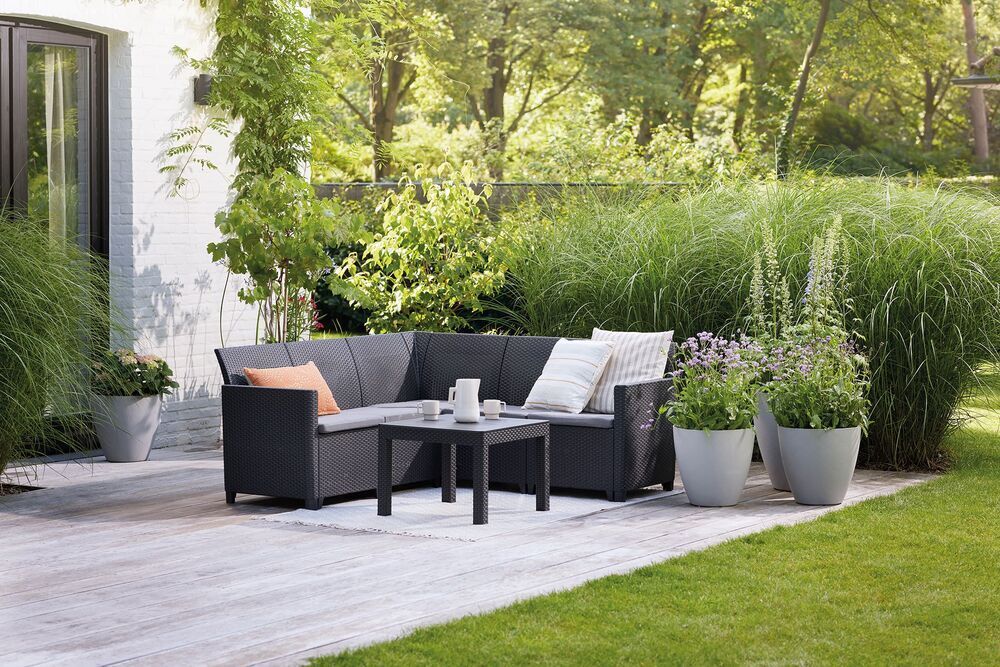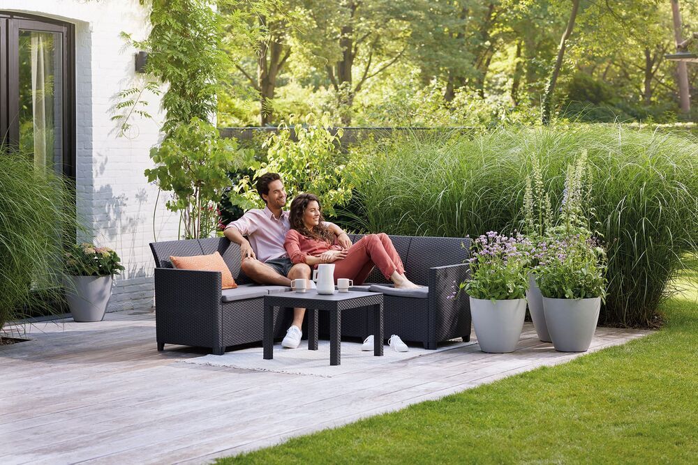 Proměňte svou terasu, balkon nebo dvorek zahradní soupravou, která je vyrobena z lisovaného plastu v imitaci přírodního ratanu.