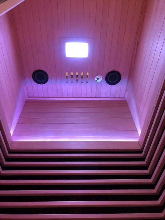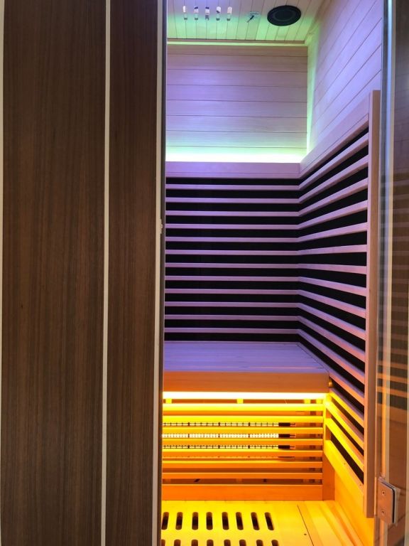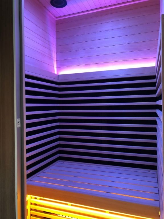 V infrasauně je rozmístěno 7 karbonových topidel a 1 redlight topidlo.