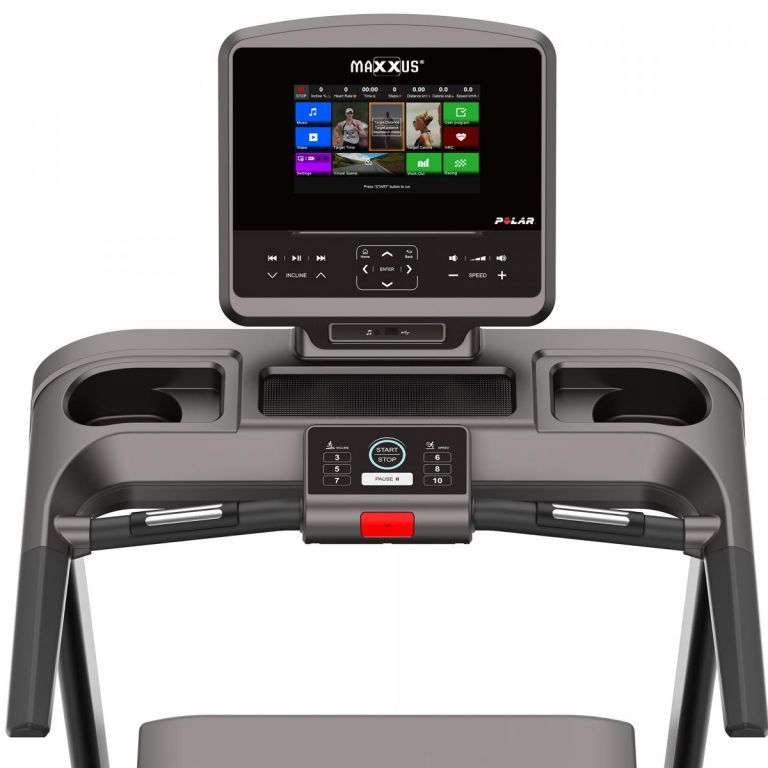 Běžecký pás MAXXUS RunMaxx 7.4 nastavuje nové standardy. 10,1" TFT displej s vysokým rozlišením je skutečným multimediálním a motivačním zázrakem. Systém nabízí možnost přehrávání vlastní hudby nebo videí a zajišťuje tak zábavné tréninky. Model navíc nabízí dva dokonale sladěné systémy tlumení a zajišťuje tak trénink obzvláště šetrný ke kloubům a příjemný, realistický pocit z běhu. Po skončení tréninku lze běžecký pás rychle složit a ušetřit tak místo.