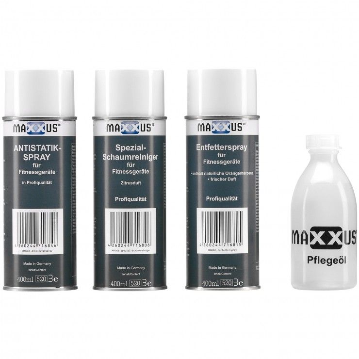 Čistící pěna na fitness zařízení je vysoce kvalitní pěnový čistič je ideální pro čištění celé řady fitness zařízení a masážních křesel MAXXUS. Odstraňuje nepříjemné otisky prstů na jakémkoli povrchu, tělesný pot a částečky kůže, tekutiny všeho druhu, nikotinové usazeniny, hmyz, popisovače. Čistič povrchů byl vyvinut speciálně pro prodloužení životnosti čištěného produktu. Vysoce kvalitní antistatický sprej je ideální pro běžecké pásy, crossové trenažéry, ergometry, veslařské trenažéry, kola, posilovny, stojany, multipressy, plastové kryty na fitness vybavení a mnoho dalšího. Působí proti statickému náboji a snižuje usazování prachu na plastové povrchy. Po aplikaci sprej vytvoří ultratenký neviditelný film.
