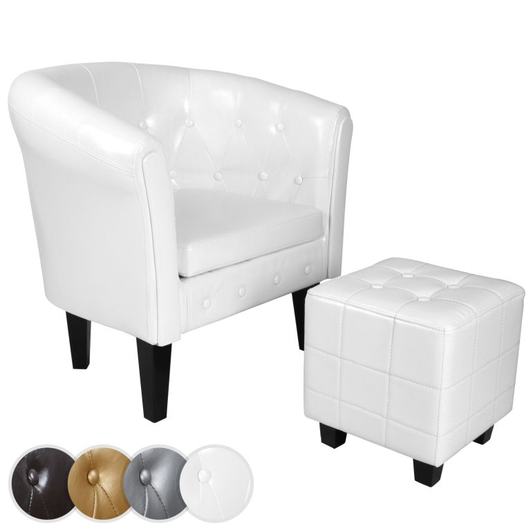 MIADOMODO Křeslo Chesterfield s taburetem, bílá