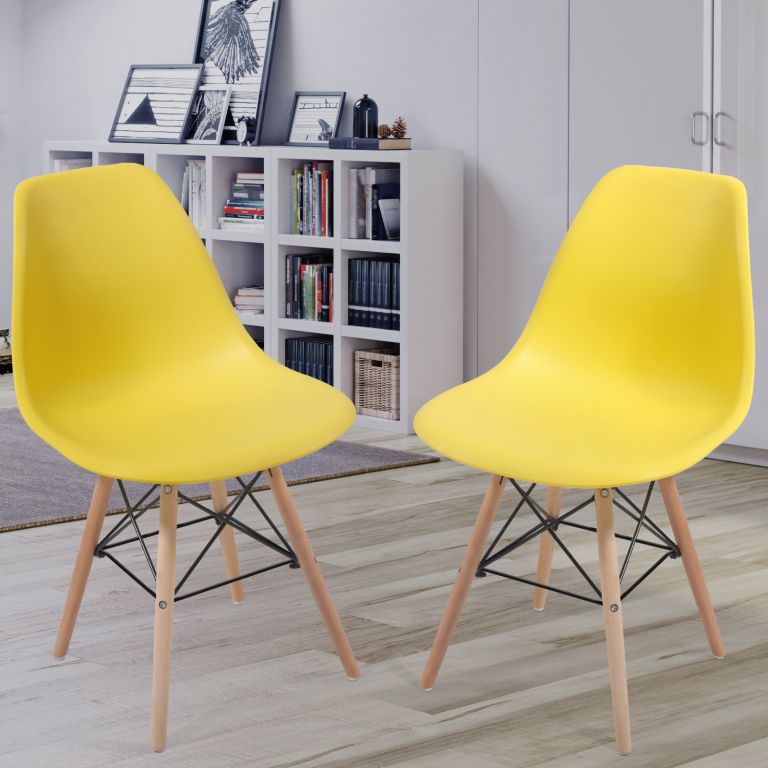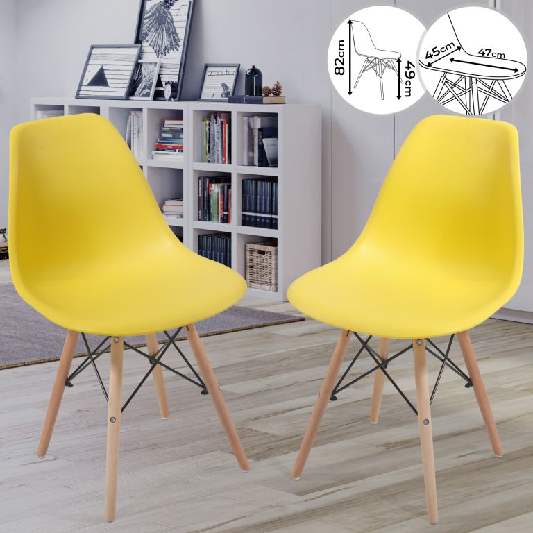 Miadomodo Sada 2 jídelních židlí s plastovým sedákem, žlutá