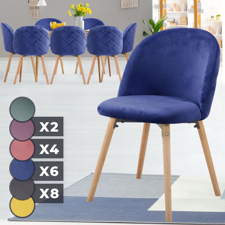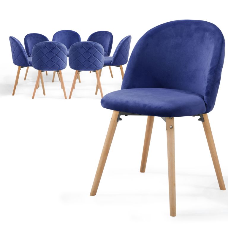 MIADOMODO Sada jídelních židlí sametové, kr. modrá, 8 ks
