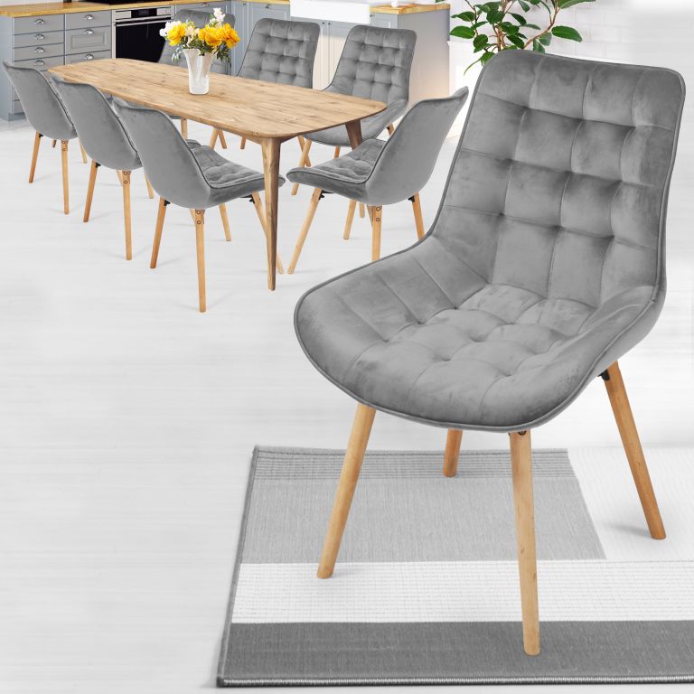 Nábytek ve skandinávském stylu je již delší dobu trendem v domácnostech i komerčních prostorách. Naše vintage jídelní židle upoutá pozornost a vnese do Vašeho domova jednoduchou eleganci. Stabilní opěradlo a tvarovaný sedák s čalouněním zajišťují pohodlí při sezení. Pevnost židle je zajištěna díky nohám z bukového dřeva. Židle se hodí do jídelny, kuchyně, obývacího pokoje nebo do haly, zkrátka kamkoliv, kde hledáte pohodlné a stylové posezení. Tyto moderní a zároveň vintage jídelní židle se sametovým sedákem a nohami z bukového dřeva jsou dokonalým doplňkem každého interiéru. Díky polstrování sedáku v tloušťce 5 cm jsou židle opravdu velice pohodlné. Upozornění: reálná barva se může od fotografie lišit v závislosti na zobrazovací technice.
