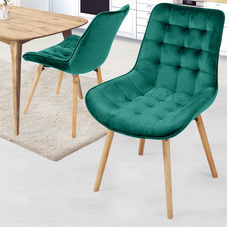 Nábytek ve skandinávském stylu je již delší dobu trendem v domácnostech i komerčních prostorách. Naše vintage jídelní židle upoutá pozornost a vnese do Vašeho domova jednoduchou eleganci. Stabilní opěradlo a tvarovaný sedák s čalouněním zajišťují pohodlí při sezení. Pevnost židle je zajištěna díky nohám z bukového dřeva. Židle se hodí do jídelny, kuchyně, obývacího pokoje nebo do haly, zkrátka kamkoliv, kde hledáte pohodlné a stylové posezení. Tyto moderní a zároveň vintage jídelní židle se sametovým sedákem a nohami z bukového dřeva jsou dokonalým doplňkem každého interiéru. Díky polstrování sedáku v tloušťce 5 cm jsou židle opravdu velice pohodlné.
