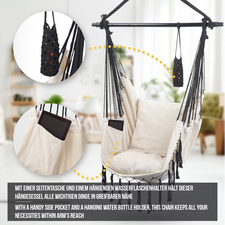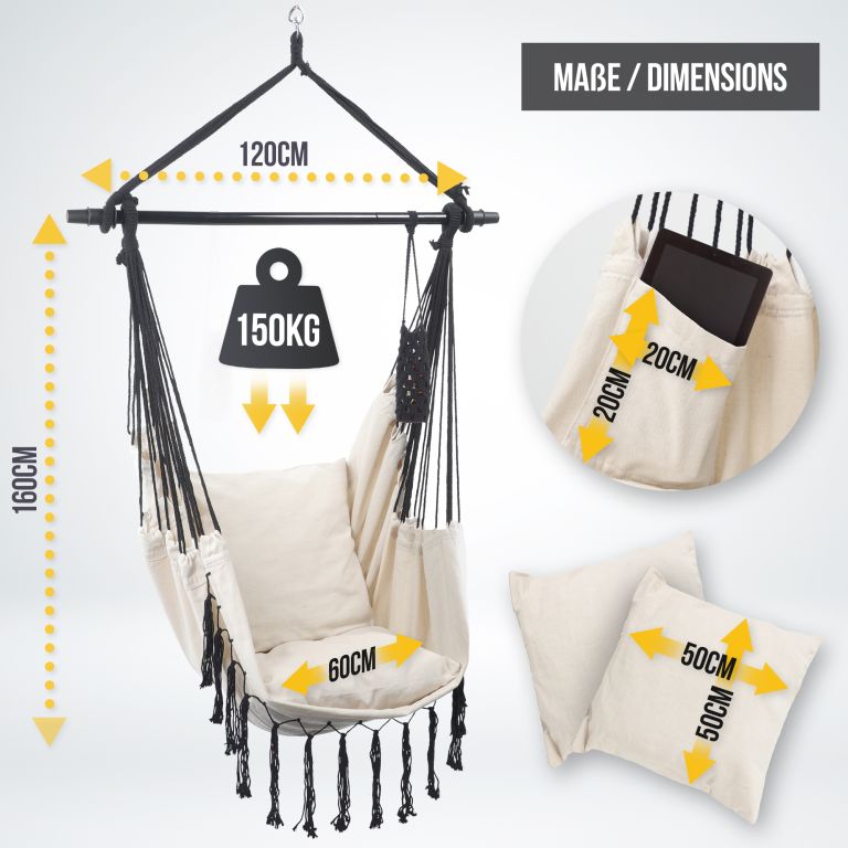 Po dlouhém pracovním dni si s knihou a šálkem kávy dokonale odpočinete v tomto visacím křesle, ať už jste doma nebo venku. Jakmile si jednou pohodlně sednete do tohoto visacího křesla, nebudete se z něj chtít vynořit.