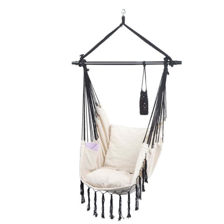 MIADOMODO Závěsné houpací křeslo, béžové, dovnitř i ven