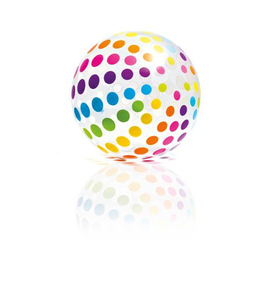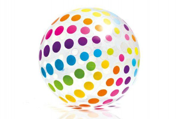 Nafukovací velký míč s barevnými puntíky. Vhodný do vody a nebo na plážový volejbal.Průměr 107 cm.Věk: 3+