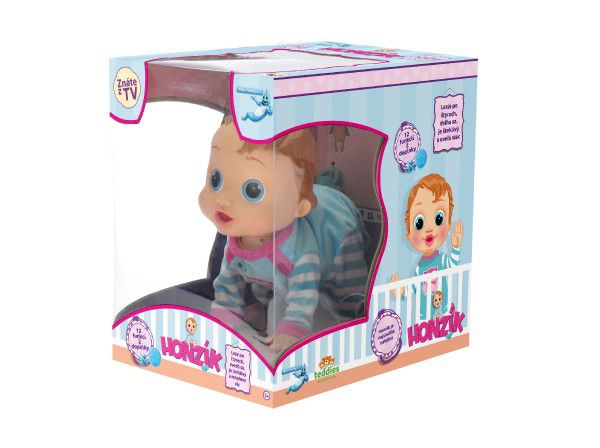 Interaktivní miminko Honzík leze po čtyřech, sedá si, tančí a zpívá. Honzík rozumí až 11 různým příkazům - čím více si s Honzíkem hrajete, tím více toho umí - kartička s příkazy je součástí balení. Obsahuje doplňky (míč a dudlík).Velikost: 27 cm.Na baterie, v krabičce.