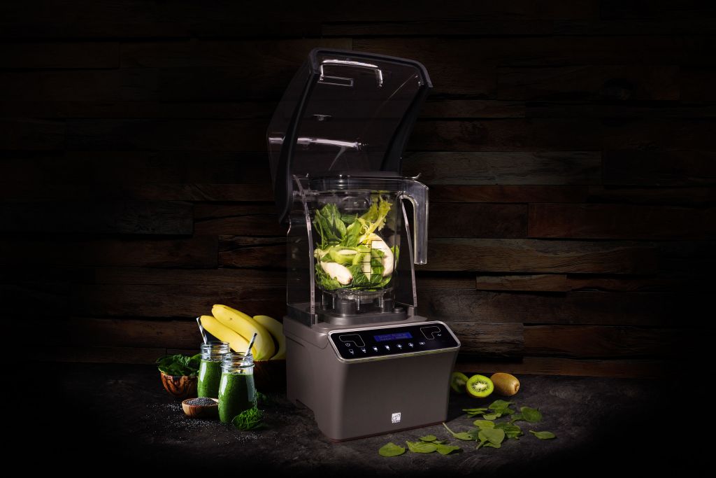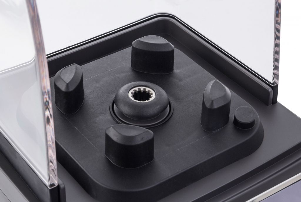 Velkou předností tohoto stolního mixéru v atraktivním moderním designu je odhlučňovací kryt pro izolaci hluku. Provoz je proto podstatně tišší, než je tomu u jiných stolních mixérů. Odhlučňovací kryt je průhledný, takže nebrání ve výhledu na obsah mixovací nádoby. Zároveň kryt slouží jako bezpečnostní pojistka. Ovládá se dotykem. Na digitálním displeji si zvolíte buď některý z přednastavených programů pro mixování s různými otáčkami i dobou mixování.