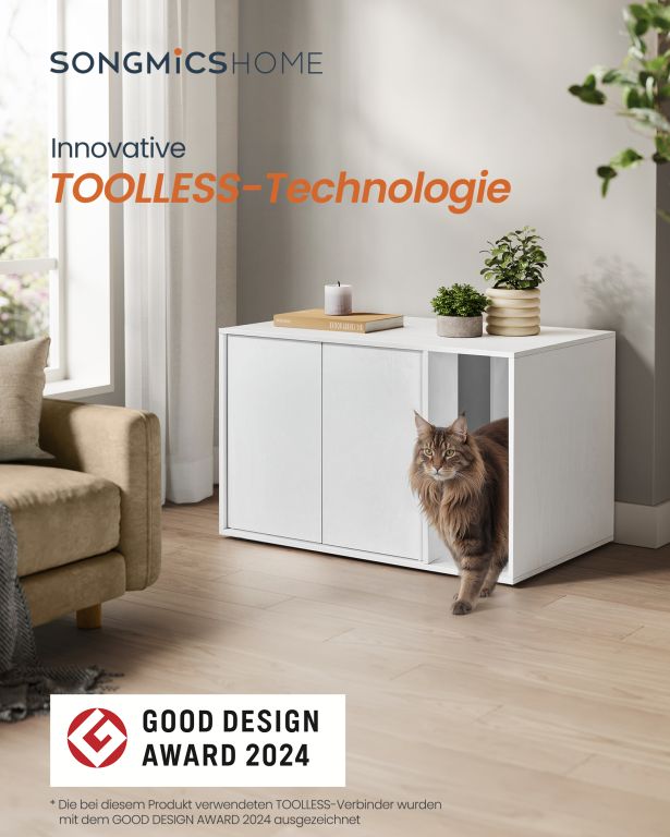 Montáž zvládnete během několika minut bez nářadí díky inovativním spojům. Skříňka je vyrobena z kvalitní dřevotřísky a MDF, což zaručuje pevnost a dlouhou životnost. Prostorný interiér je vhodný i pro větší kočky, snadno se čistí a udržuje.
