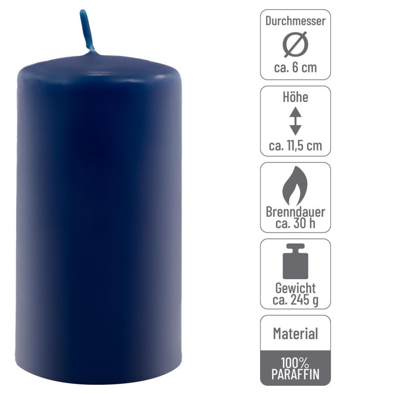 Modrá parafínová svíčka 11,5 cm, 30 h hoření, sada 6 ks