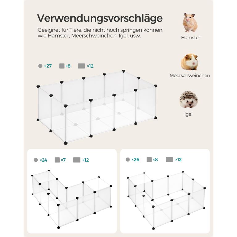 Zobrazit podrobnější popisModulární ohrádka pro zvířata, jednoduchá montáž, odolné materiály, bílá barva.