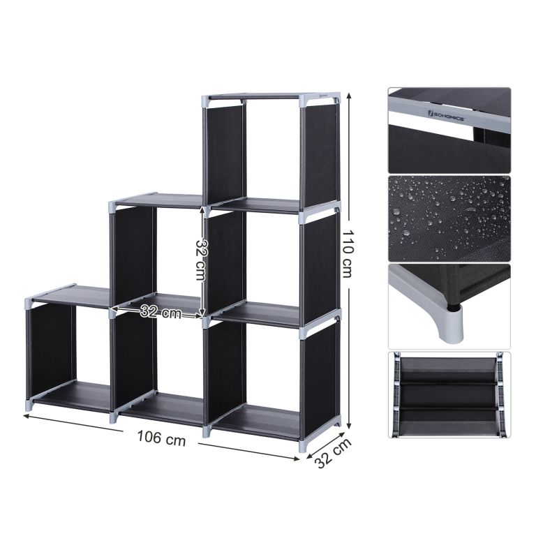 Modulární textilní regál 6 kostek, černý, 105×30×105 cm
