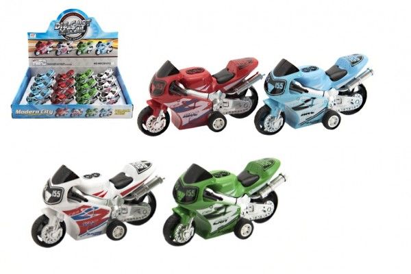 Zobrazit podrobnější popisMotorka silniční plast 9cm na zpětný chod 4 barvy 12ks v boxu