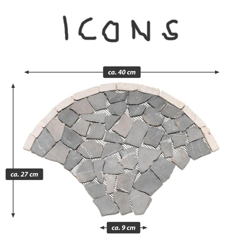 Mozaika z přírodního kamene, vějíř, šedá, 0,98 m2