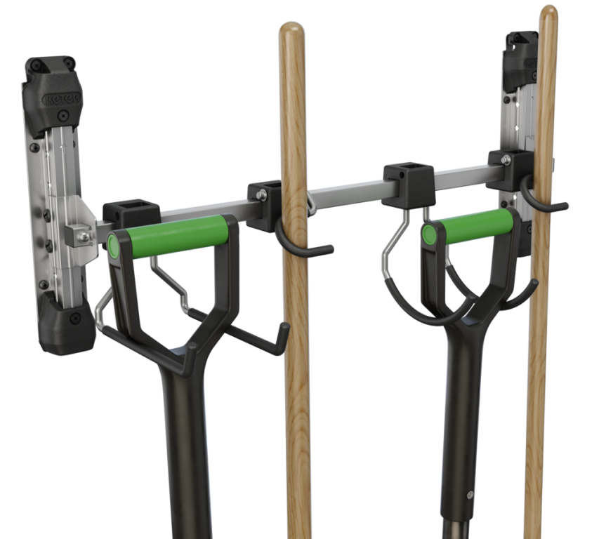 Robustní konstrukce z pozinkované oceli zajišťuje dlouhou životnost a odolnost proti korozi. Nastavitelné háčky s nosností až 9 kg umožňují zavěsit různé typy nářadí, zatímco povrchová úprava chrání před poškrábáním. Montáž je snadná a držák je kompatibilní se zahradními domky KETER (kromě řady Factor).