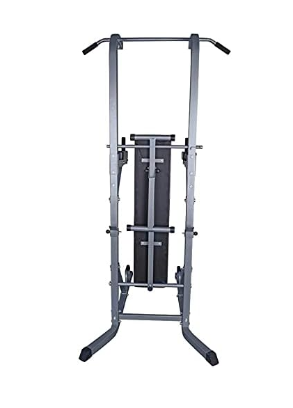 Zažijte mnohostranný silový a crossový trénink v plném rozsahu s naší robustní fitness věží. Tento posilovací balíček vše v jednom má kliky na kliky, stanici na dip, hrazdu, posilovací lavici a odkládací plochu na dlouhé činky, které umožňují komplexní trénink zad, paží, hrudi a trupu. Promyšlené schody zajišťují snadný přístup k polstrovaným plochám a protiskluzové potahy rukojeti zajišťují bezpečné držení. Nastavitelná odkládací plocha na činky a skládací opěradlo rozšiřují váš tréninkový program a umožňují různé cviky s přítlačnými činkami a lavicemi. Věž váží 39 kg a je vyrobena z masivní oceli, což jí dodává nepřekonatelnou stabilitu. Protiskluzové nohy chrání nejen vaši podlahu, ale poskytují i při intenzivním cvičení pevné držení.
