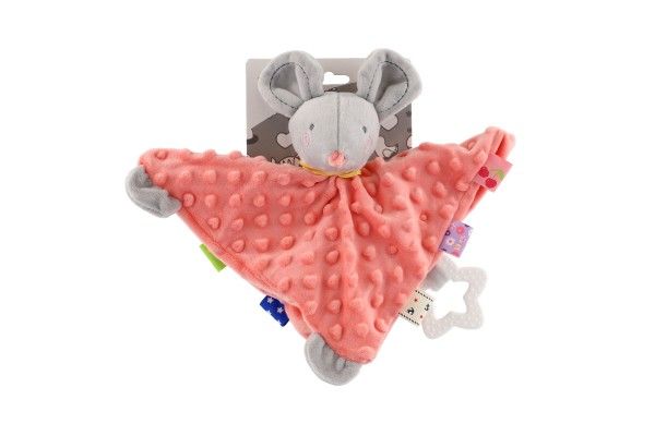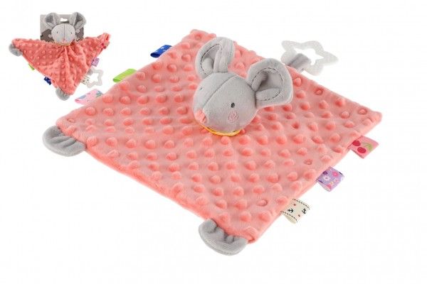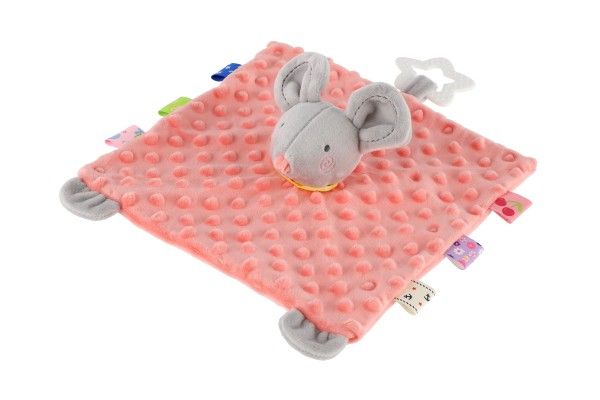 Myška usínáček chrastítko, plyš, 23 x 23 cm, lososová