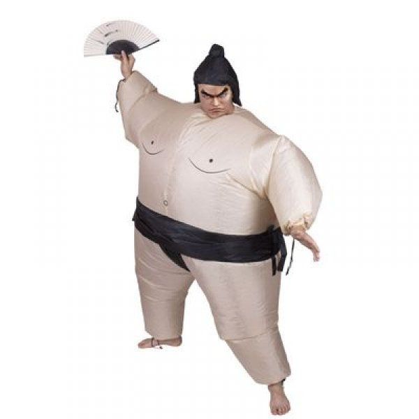 Nafukovací kostým bojovníka Sumo. Nafoukne se za pár vteřin Součástí balení je i nafukovací čepička imitující vlasy. 100% nylonu. Nafukuje se pomocí přiloženého ventilátoru. Univerzální velikost Pro děti nad 10 let. Slouží jako kostým, nikoliv na zápas