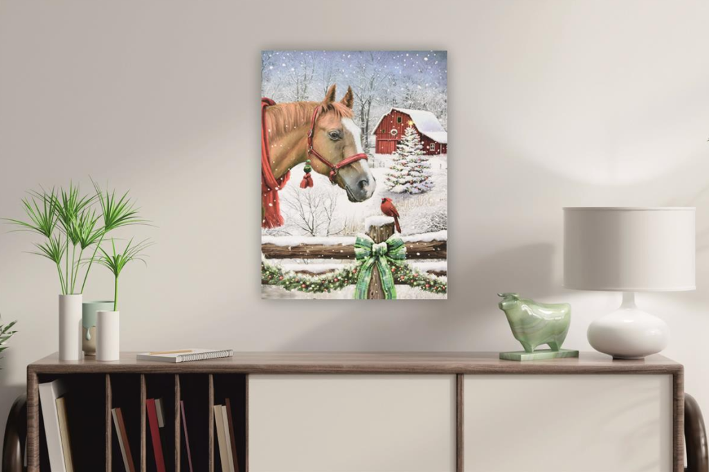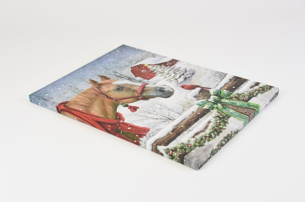 Naše dekorativní LED obrazy jsou k dispozici v různých velikostech a designech. Dodá vašemu schodišti, obývacímu pokoji, kanceláři nebo ložnici barevné akcenty. Tyto dekorativní obrazy, potištěné moderními, vysoce kvalitními fotografickými tisky, jsou vždy ozdobou každé místnosti a rozzáří vaše okolí. Zimní motiv koně a vrabce na zasněžené farmě vytváří příjemnou zimní náladu a atmosféru. Toto nástěnné umění září okouzlujícím světlem díky jedné LED diodě a 40 optickým vláknům. Vysoce kvalitní fotografický tisk na plátně je nejen ideální na Vánoce, ale také krásnou dekorací nebo skvělým dárkem. Osvětlení zajišťují energeticky úsporné LED diody.