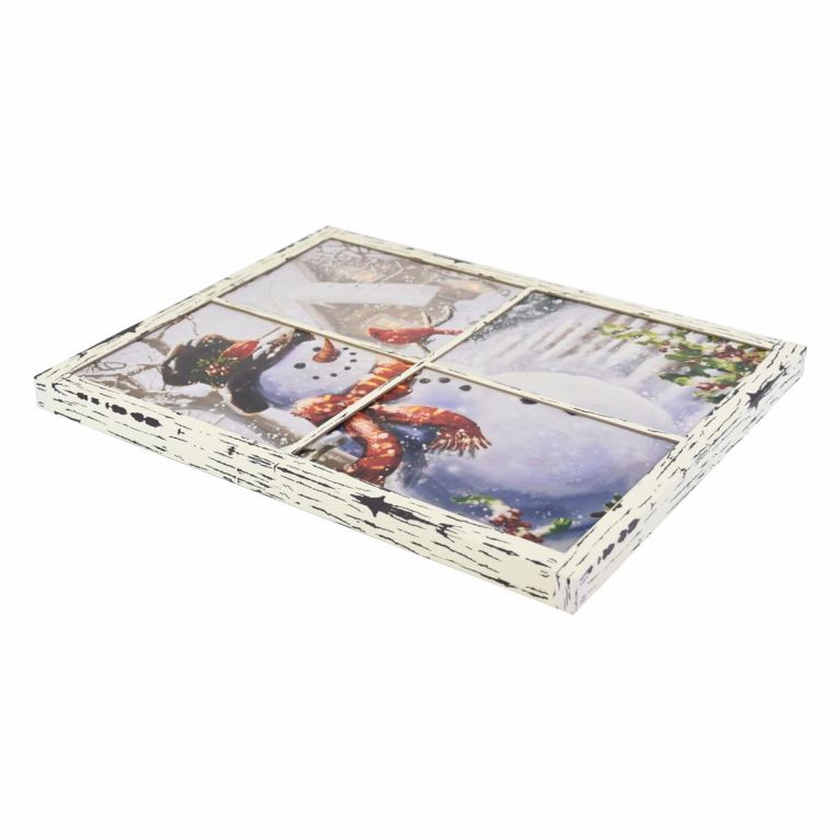 Nástěnná malba Sněhulák v okně, 3 LED, 49 x 38,5 cm