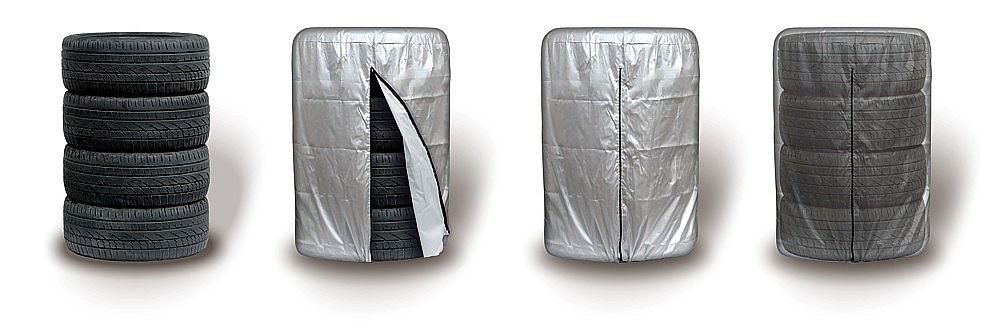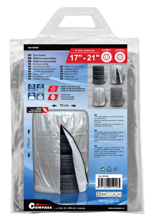 Obal je opatřen uzavíráním na zip a je vyroben z polyesteru, který dlouhodobě chrání pneumatiky před znečištěním.