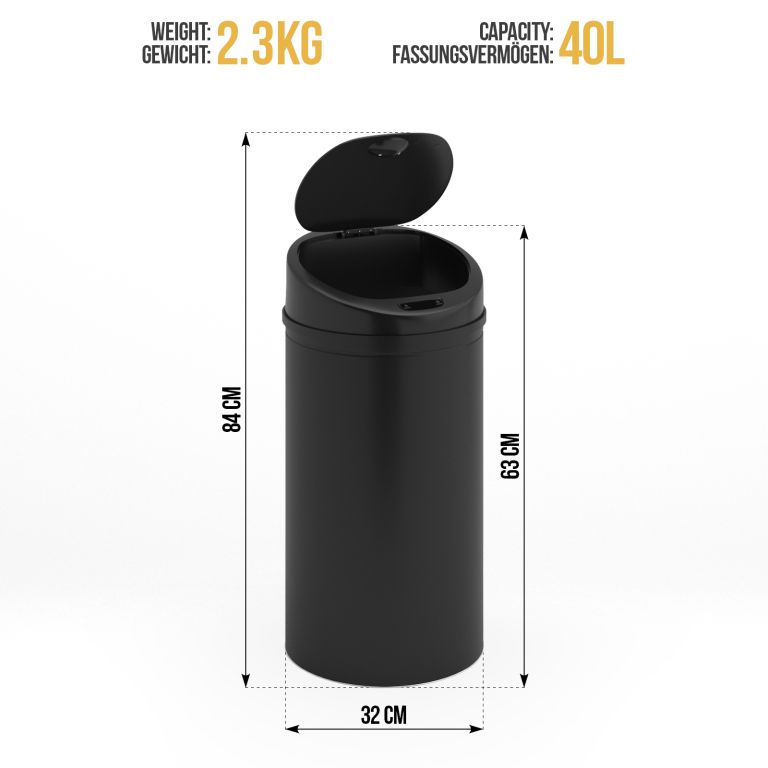 Automatický koš na odpadky se senzorem, 40 l, černý, snadná údržba a použití.