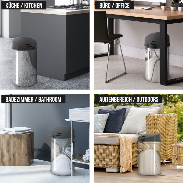 Užijte si maximální pohodlí a čistotu ve své domácnosti díky tomuto automatickému odpadkovému koši. Bezdotykové otevírání víka vám umožní vyhodit odpad rychle a hygienicky, aniž byste se museli čehokoliv dotýkat. Elegantní stříbrný design skvěle zapadne do každé moderní kuchyně či kanceláře.