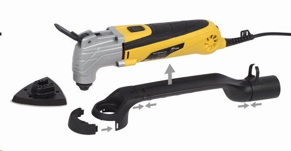 Brusku lze využít pro řezání dřeva, plastu i kovu bez vytváření nadměrného množství nečistot a hluku, dělení materiálu, odstraňování barev, linolea, odstraňování spár dlažby, prořezávání sádrokartonu, podřezávání zárubní, broušení dřevěných ploch a podobné činnosti. Všechny nástavce snadno vyměníte díky rychloupínacímu systému. S měkčeným držadlem vydržíte pracovat bez bolavých rukou o něco déle. Kabel o délce 3 m vám zajistí volnost pohybu při práci. K brusce lze připojit odsávací adaptér, takže po dokončení práce nemusíte uklízet hromádky hoblin.