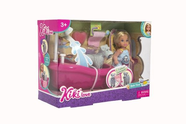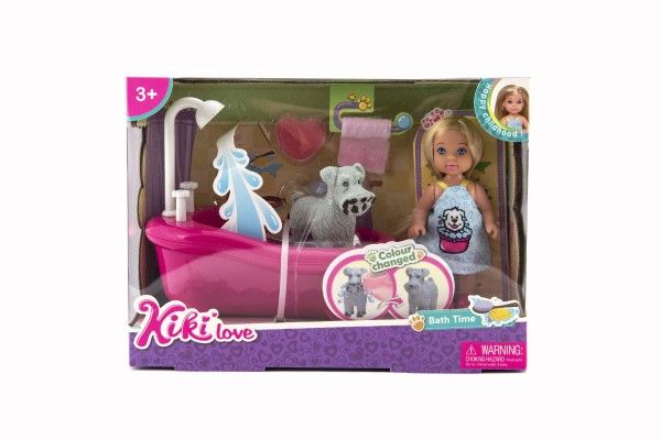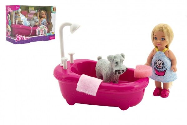 Panenka kloubová Kiki Anlily plast 12cm s mazlíčkem s vanou v koupelně v krabičce 22x16x9cm