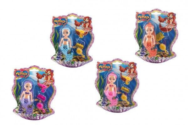 Panenka mořská panna kloubová s doplňky plast 12cm 6 barev na kartě