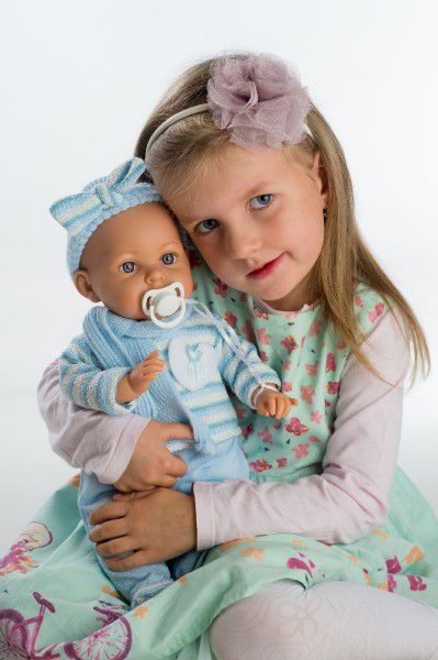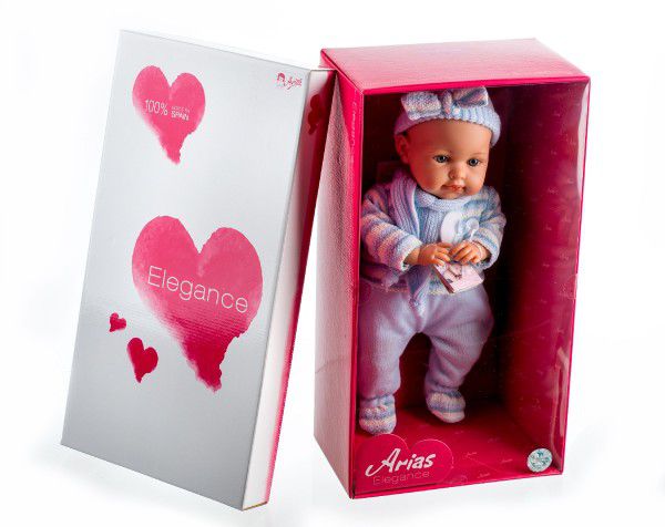 Miminko značky Arias po vyndání dudlíku pláče a říká "mama, papa" 3x po sobě. Miminko příjemně voní a má měkké tělo, 45 cm, na baterie.