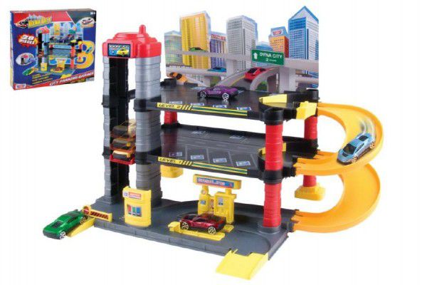 Parkovací garáž + auto 28ks plast v krabici 40x35cm