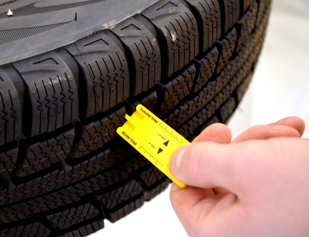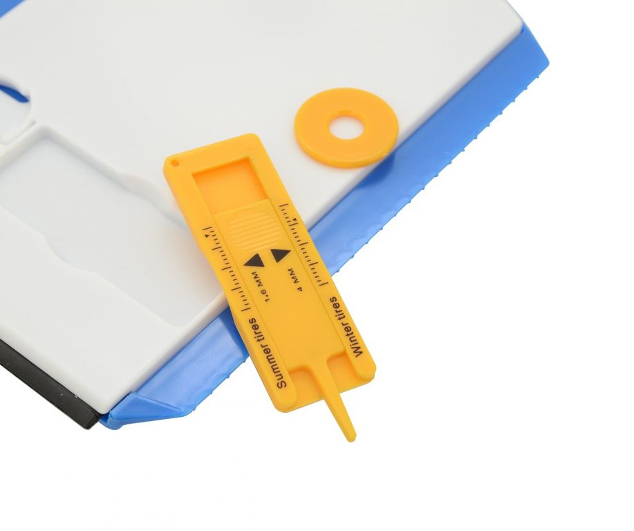 Parkovací hodiny s měřičem dezénu, škrabkou a žetonem