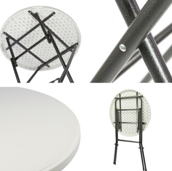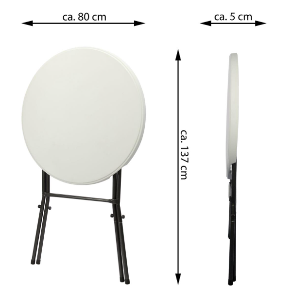 Stůl je lehký, snadno přenosný a rychle složitelný. Kovová konstrukce zajišťuje stabilitu, zatímco plastová deska je odolná a snadno se udržuje. Potah z pružné tkaniny lze prát do 30 °C a díky zesíleným koncům vydrží i časté používání.