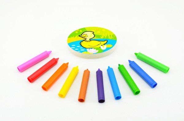 S pastelkami do vany Moje první zvířátka se vaše koupelna promění každý den v jiný svět. Malují na vanu i obklady a děti si s nimi užijí moře legrace. Mohou vytvořit hotová umělecká díla a maminky se nemusí obávat, protože tyto pastelky jdou lehce smýt. Jsou zcela bezpečné, netoxické a hypoalergenní. Sada obsahuje 10 pastelek a houbičku s motivem kačenkyRozměr krabičky: 21 x 22 x 3 cmVhodné od 3 let