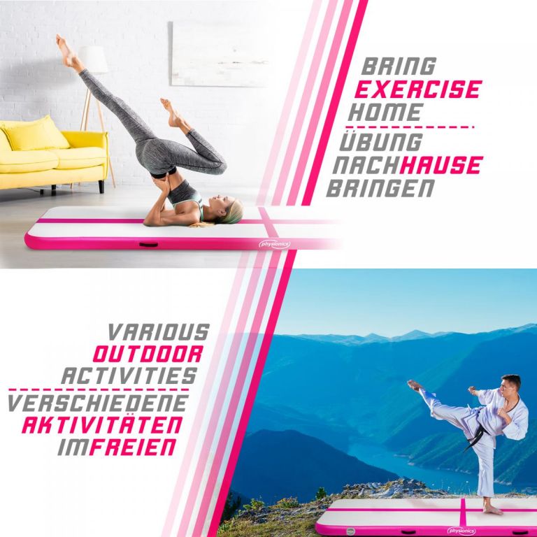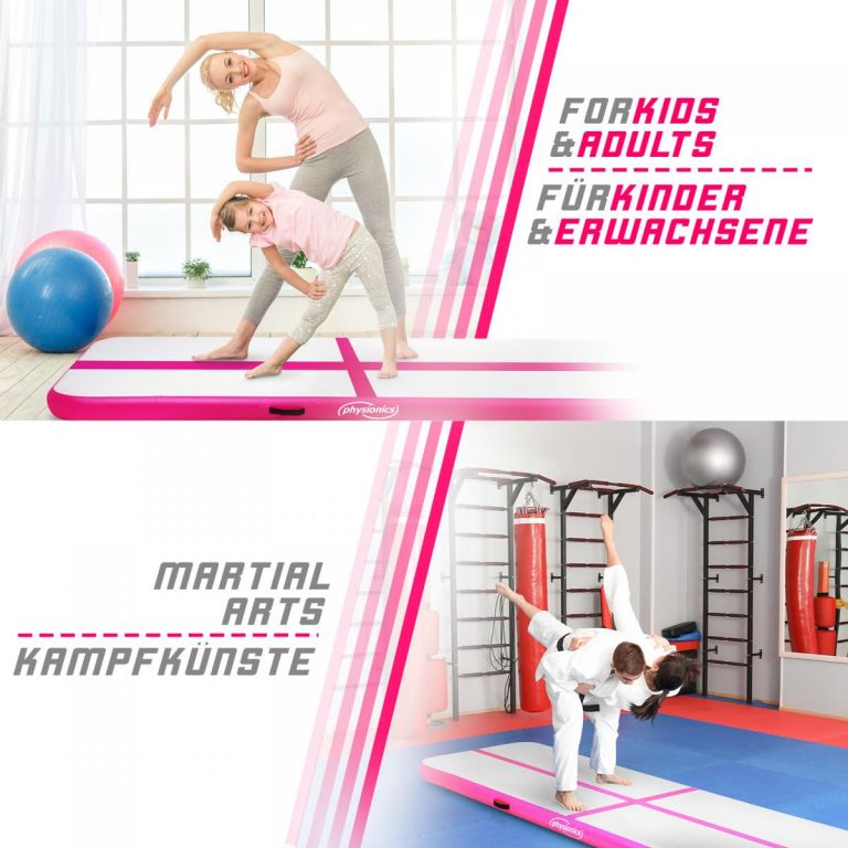 Physionics Airtrack nafukovací žíněnka, 8 m, růžová