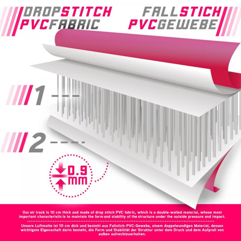 Nafukovací gymnastická žíněnka je univerzální tréninkový nástroj vhodný pro širokou škálu sportovních aktivit, jako je gymnastika, cheerleading, parkour, bojová umění, školní sporty a další. Je také možné ji využít v bazénu. Tato žíněnka je vyrobená z dvoustěnného materiálu, jehož hlavní vlastností je udržet tvar a stabilitu konstrukce při vnějším tlaku a nárazu.