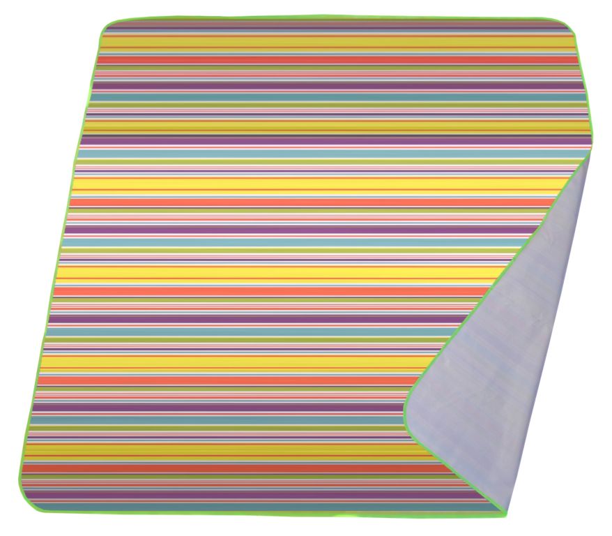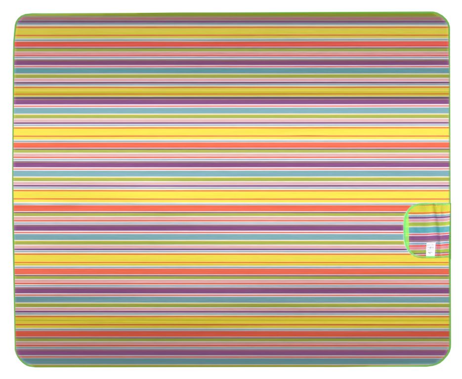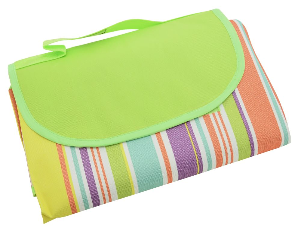 Prakticky balená, voděodolná deka s pastelovým pruhováním, vhodná pro piknik, do parku, na výlety, zahrady a další.