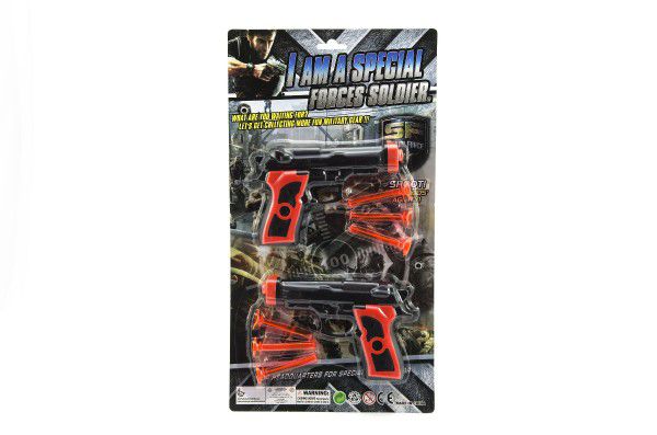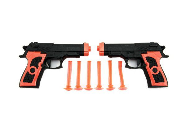 Pistolky potěší především kluky, kteří si chtějí hrát na skutečné policisty. Nyní už před nimi nikdo neuteče. Dětem se při hře s pistolkami a náboji nemůže nic stát, protože náboje jsou opatřeny přísavkami. Děti mohou střílet do terče, nebo i na sklo. Pistolky jsou vyrobeny z vysoce kvalitního a zdravotně nezávadného plastu, který je odolný vůči mechanickému poškození.Vhodné od 3 let.