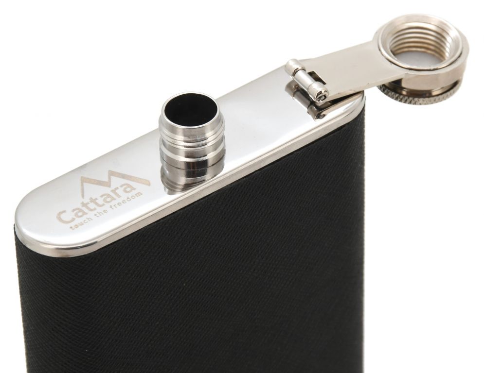 Uzávěr je zajištěný před ztrátou a je klasicky šroubovací s vnitřním těsněním. Tělo z nerezové oceli je navíc opatřeno černým potahem, díky kterému se placatka dobře drží a vypadá lépe, než bežné leštěné placatky. Potah navíc minimalizuje zanechávání fleků a otisků prstů na ocelovém těle.