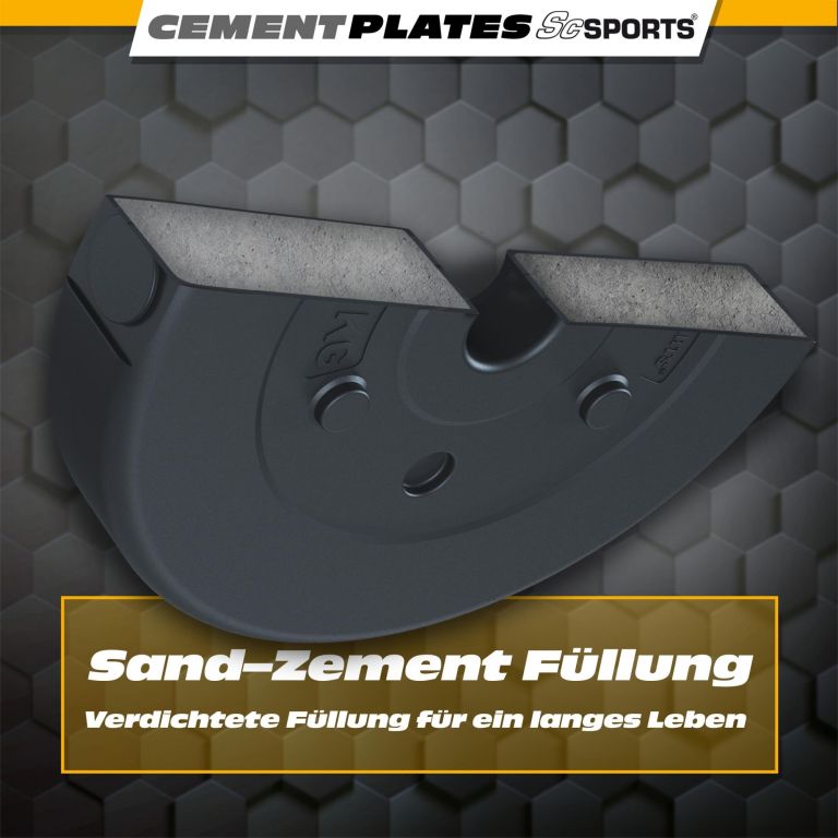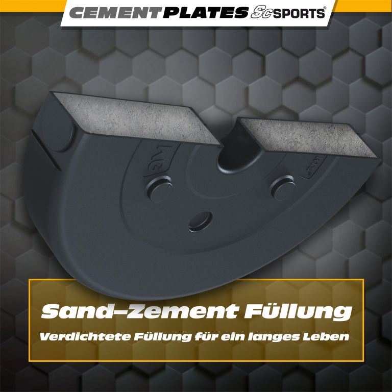 Kotouče jsou plněné cementem a mají otvor 30/31 mm, což zajišťuje kompatibilitu s většinou os. Propracované prolisy a výstupky minimalizují rotaci a usnadňují zvedání kotoučů ze země. Ideální volba pro domácí posilování.
