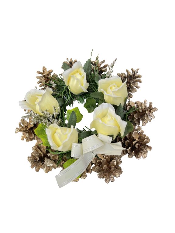 Dekorační věnec se šiškami a růžemi. Vhodný jako podzimní věnec do bytu nebo na zahradu. Je možné ho použít také jako venkovní dekoraci při Památce zesnulých.