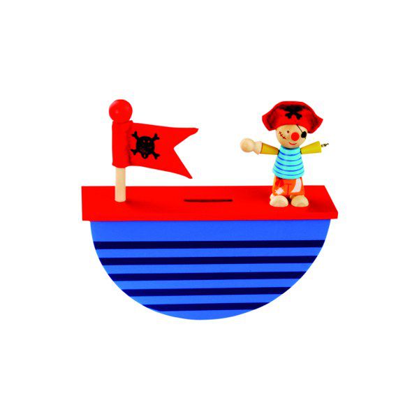 Pokladnička – pirát. Dřevěná houpací kasička pro malé kluky, kteří si chtějí ušetřit korunky na nejdůžitější věc na světě. Copak to bude právě u Vás?