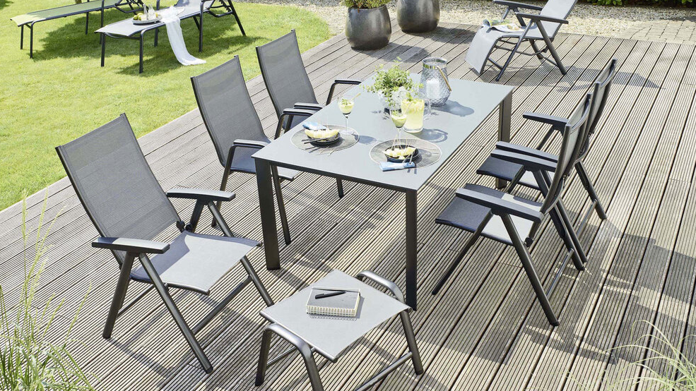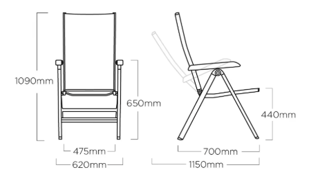 Robustní hliníkový rám s práškovým nástřikem zajišťuje vysokou stabilitu a odolnost vůči korozi. Venkovní tkanina je tvarově stálá a odolná UV záření, takže křeslo vydrží i náročné podmínky. Ergonomické područky a nosnost 150 kg zaručují komfort i dlouhou životnost. Údržba je snadná, konstrukce lehká a skladná.