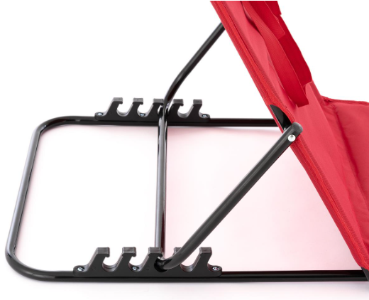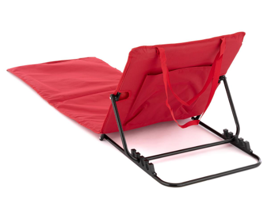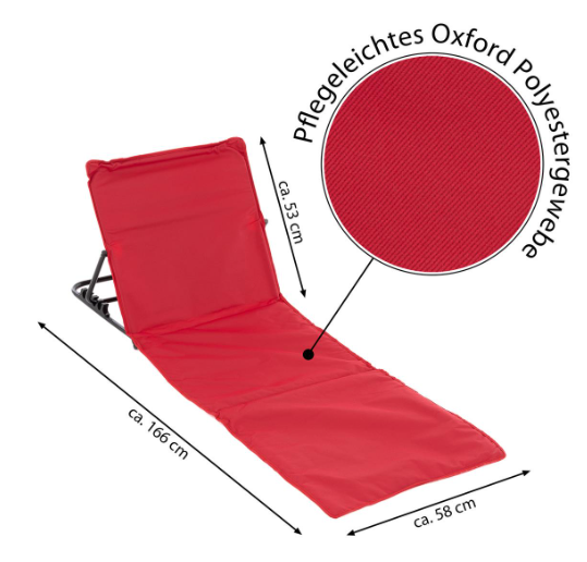 Zobrazit podrobnější popisUžívejte si pohodlí na pláži i na zahradě — červená polstrovaná podložka s nastavitelným opěradlem je skládací, lehká a praktická.