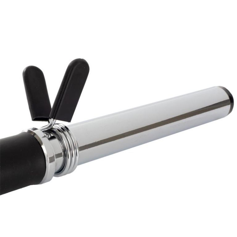 Posilovací tyč s pěnovým madlem a pružinovými zámky pro bezpečný a pohodlný trénink.