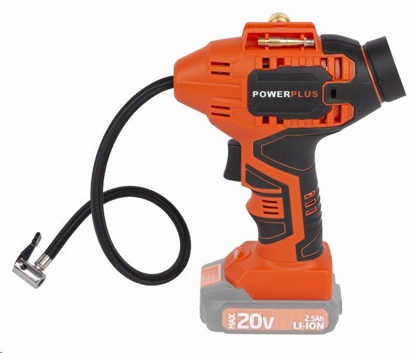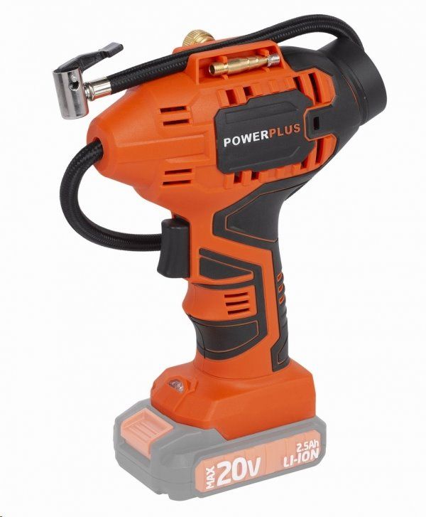 Pohodlnou práci zaručí měkčené držadlo, které skvěle padne do ruky. Lehký kompresor PowerPlus je vybaven i přehledným LCD displejem a funkčními tlačítky. Stiskem tlačítka ON/Unit odečtete aktuální tlak na tlakoměru. Opětovným stiskem toho tlačítka přepínáte jednotky – PSI (anglicky pound per square inch – česky libra síly na čtverečný palec), kPa (Pascal), bar a kg/cm. Při práci se rozsvítí kontrolka LED na základně nástroje, což je dobré při nečekaném dofukování během noci. Zajisté oceníte i funkci vypnutí při dosažení nastaveného tlaku uživatelem – Auto Stop. Součástí dodávky je hadička (šlahounek) s pákovou koncovkou a sada nástavců pro huštění hraček a míčů. Kuželový nástavec lze použít na menší tlakové ventily malých předmětů jako jsou hračky pro děti, které obvykle vyžadují, aby je uživatel nafoukl foukáním vzduchu dovnitř. Jehla na sportovní míče může být použita pro nafouknutí jakéhokoliv sportovního míče – fotbalový, basketbalový, ragbyový, volejbalový či plážový míč.